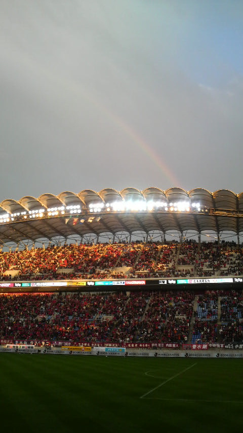 ホーム最終節磐田戦、試合終了後にスタジアムに架かる虹。